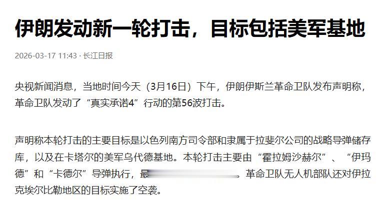 一、导弹洗地,美军防线彻底破防结合这几天的最新消息,伊朗的报复行动不仅没有偃旗息鼓,反而正在疯狂升级。