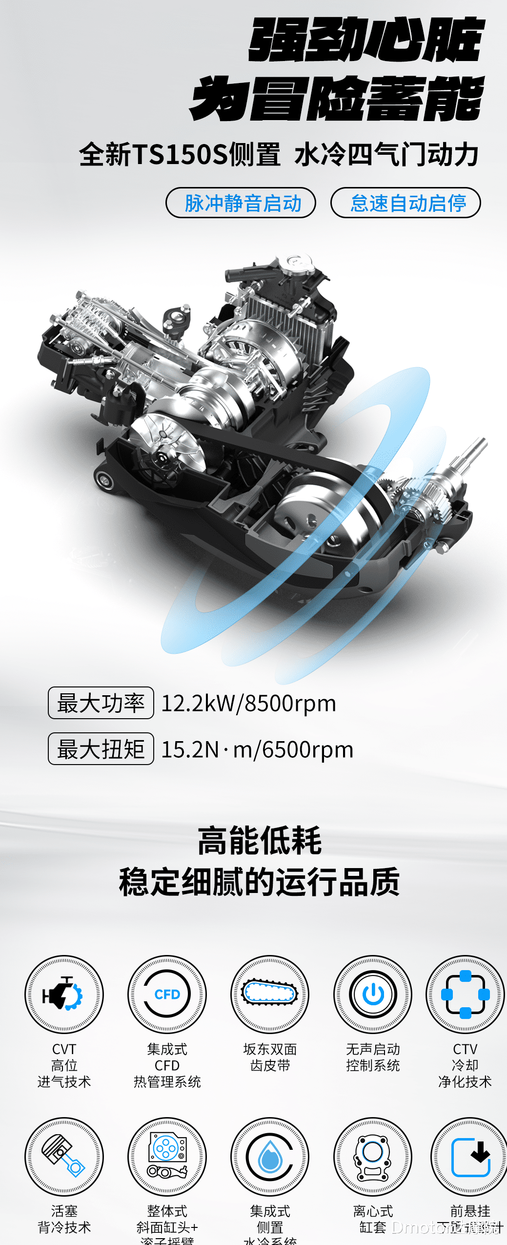 从账面来看,比同级别的150踏板都要稍强一些,尤其是扭矩输出;此外,该发动机更支持脉冲静音启动,内部零部件如皮带采用坂东等海外品牌,零部件也同样要卷。