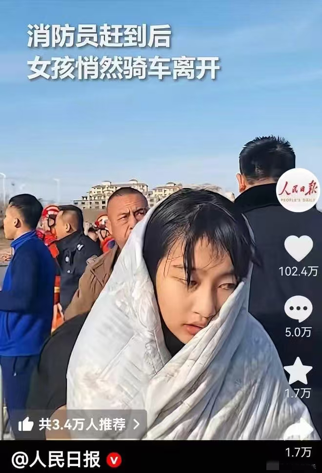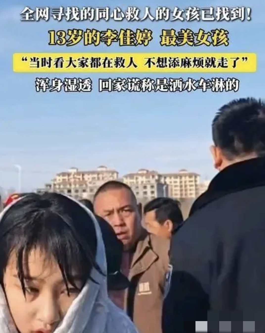 救人后,李佳婷未留姓名悄然离开,回家后为不让父母担心,谎称“衣服被洒水车淋湿”。直到当晚家人看到网上流传的视频,才得知真相。