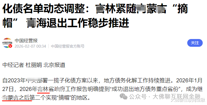 原本化债之初划了12个重点区域,目前已经有2地宣布退出。最早的是在25年7月退出的N蒙,接着是在26年工作报告提到退出的J林。另外还有按下化债退出冲刺键的Q海和N夏。
