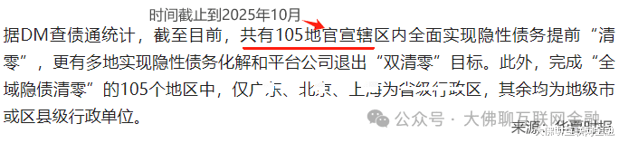 到2025年10月左右,华夏时报据DM查债通统计,已官宣的辖区内隐债清零的区域已经增加到105个地区。