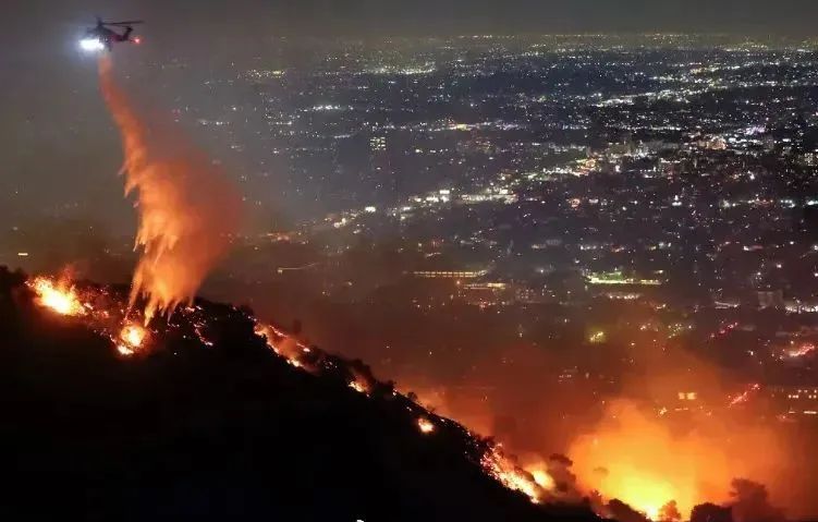 1月8日傍晚,好莱坞山上燃起一场“日落大火”(Sunset Fire),在好莱坞露天剧场附近,大火肆意燃烧,距离好莱坞知名景点星光大道仅有1公里。洛杉矶市消防局随即发布疏散令。多位好莱坞电影明星和加州名人的住宅皆被烈火吞噬,就连副总统哈里斯在当地的住所也受到波及。