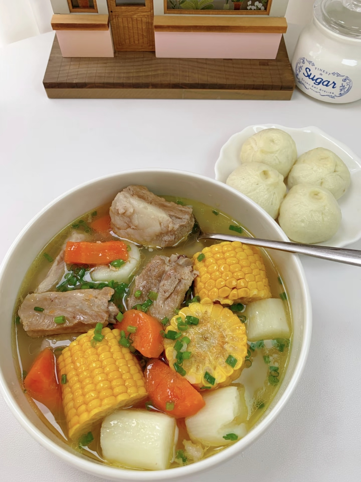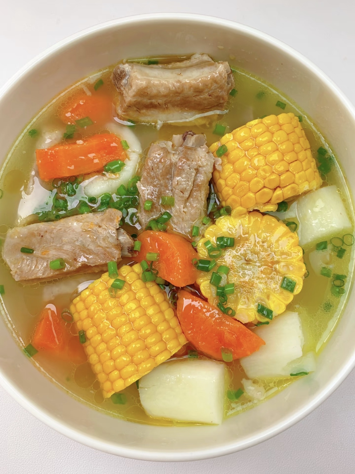 揭开盖子的那一刻,你会懂的。汤色清亮,却泛着诱人的油光;排骨已经炖到了脱骨的状态,用筷子一夹,肉就颤巍巍地掉下来;萝卜吸饱了汤汁,变得半透明,咬一口,清甜绵软,比肉还受欢迎。先喝一口汤,那是一种非常醇和、温暖的鲜,顺着喉咙滑下去,整个胃都舒展开了。再吃一块肉,蘸一点点生抽,或者干脆就这么吃,原汁原味,是食物最本真的感动。