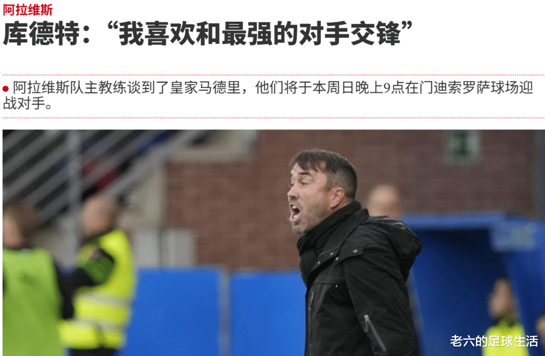 阿拉维斯的主教练库德特在赛前的新闻发布会上也提到他喜欢跟最强的对手交锋,但被问到对于皇马最近情况如何看法的时候他回答没有关注他们最近的状态,也没有关注他们缺少球员的情况。