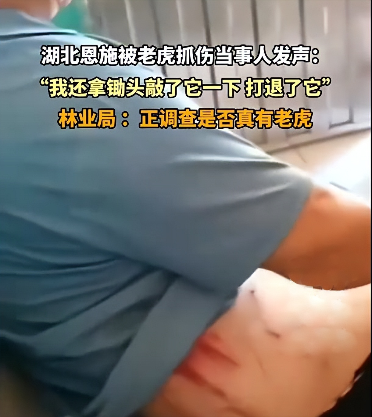 有人被老虎攻击了?近日,在湖北鹤峰县邬阳乡高峰村的一位村民李先生,自称在山上干农活的时候遭到了老虎的攻击,好在当时自己手里握着锄头,胡乱挥舞中可能打中了老虎,老虎吃痛之后遁走了。