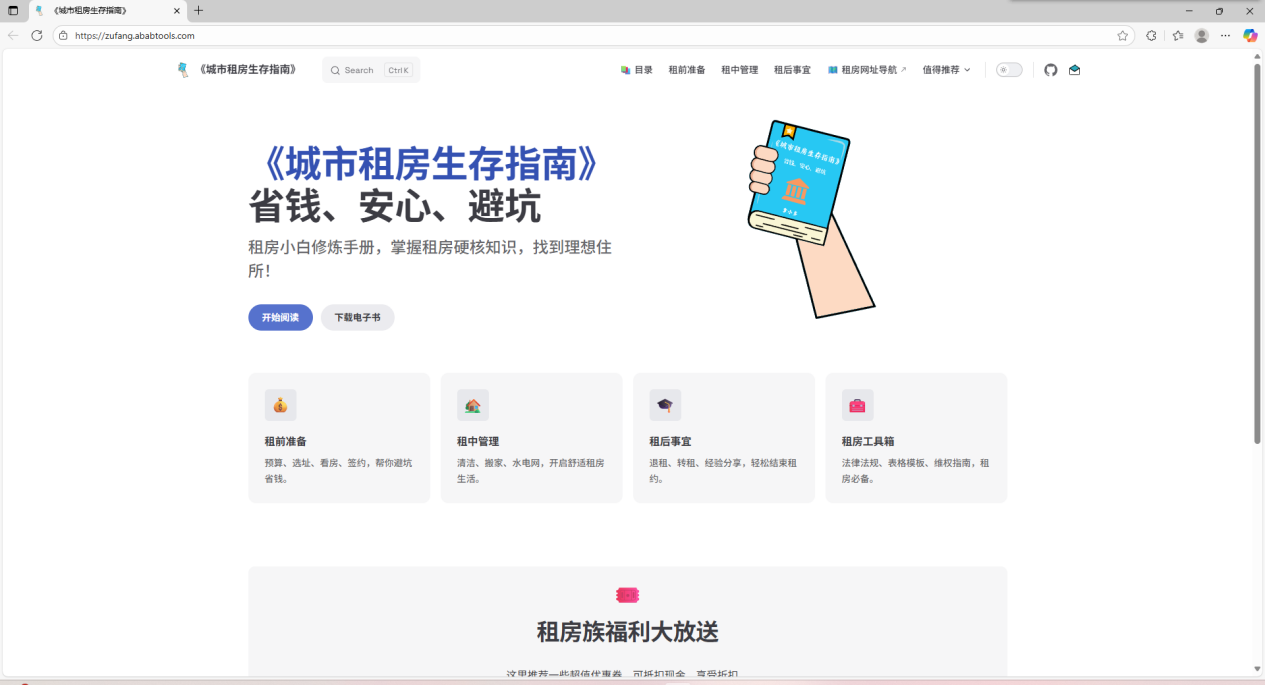 7、城市租房生存指南这是一个专门为租房小白量身打造的租房宝典网站,能够直接帮你避坑省钱,安心租房,网站提供了从如何制定预算挑选地段,筛选房源,签订合同,再到退租押金维权,转租流程,搬家清洁等租房全流程指南,手把手教你如何一步步搞定租房这件麻烦事。