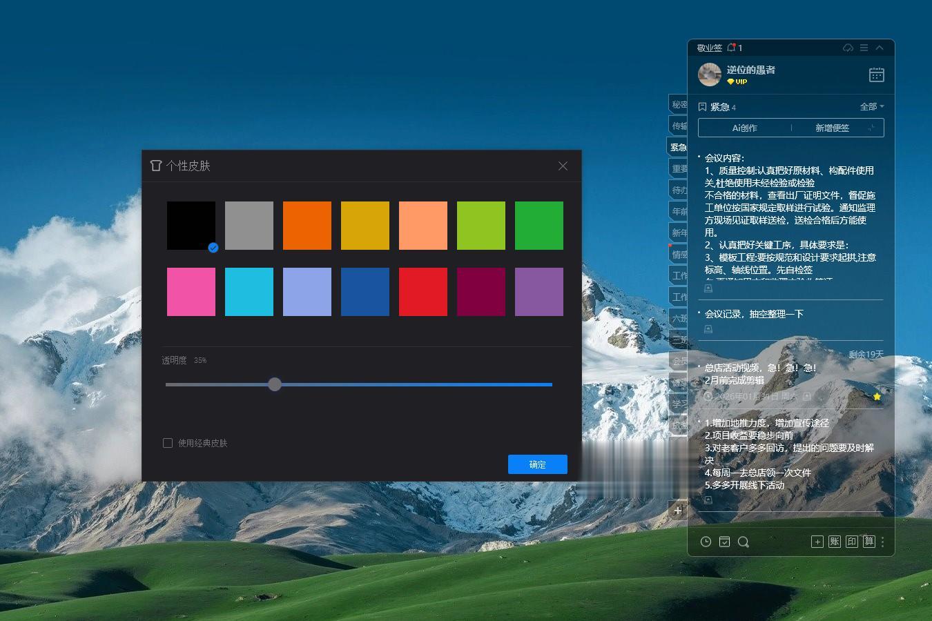 总而言之,敬业签通过桌面半透明这一巧妙的设计,解决了传统便签碍事与遗忘的痛点。它会为你构成一个可靠的个人信息管理与效率中心,让实用既看得见,也感受得到。