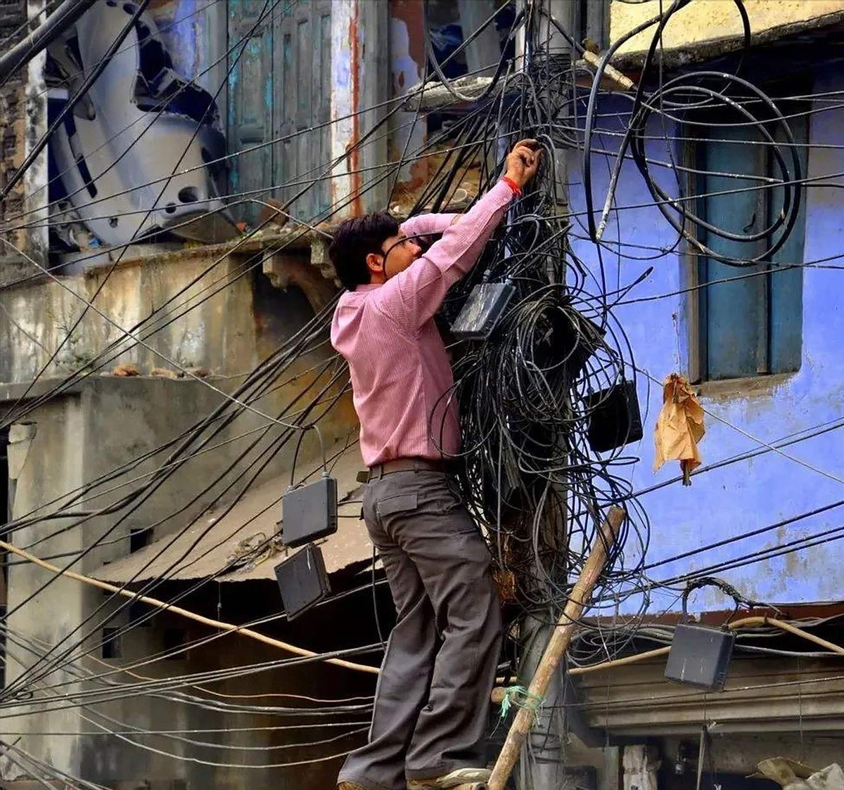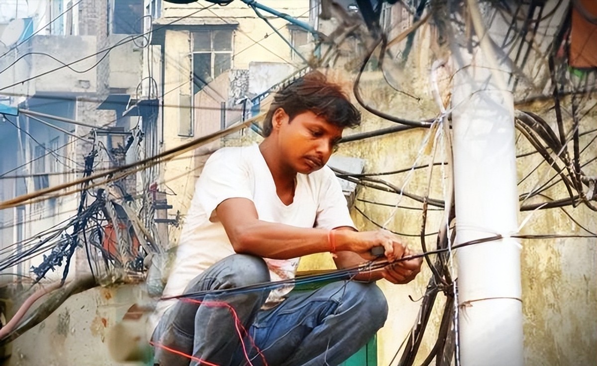 在印度的大街小巷,经常能看到私拉乱接的电线,一些人找个钳子,随便从公共电网上拉一根线,就能给自己家供电。