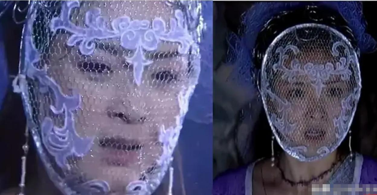 但这还不是最过分的!看看2013年钟汉良版《天龙八部》里的叶二娘!她那蒙面造型,造型师怕不是把她家大号的毛裤衩给拆了当头套?几根稀疏的粗毛线糊在脸上,俩眼睛、鼻子、嘴巴全都暴露无遗!这面罩戴了个寂寞?旁边认不出她的都是瞎子吗?叶二娘自己都快绷不住了!