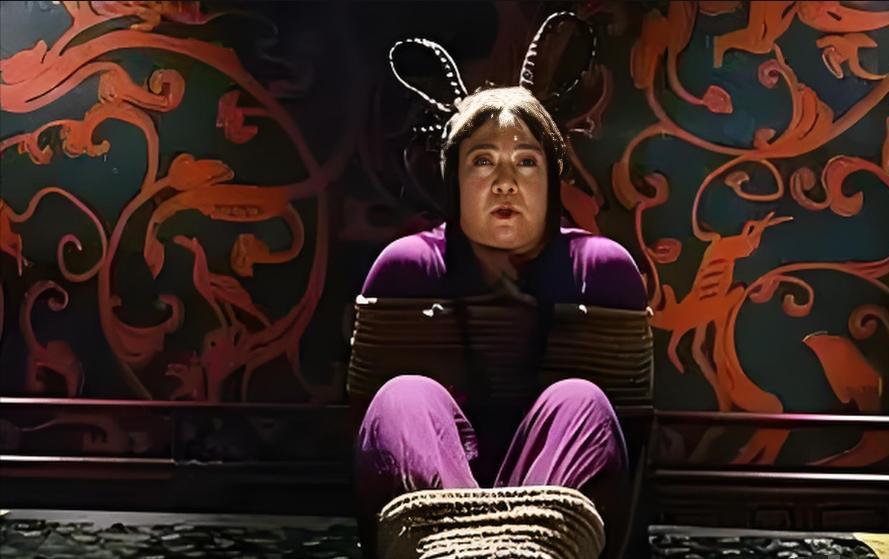 面罩已经够雷人了吧?偏偏有人全身都是“亮点”!04年《福星高照猪八戒》里韩雪饰演的铁扇公主,贡献了古装剧“奇葩造型史”上浓墨重彩的一笔!