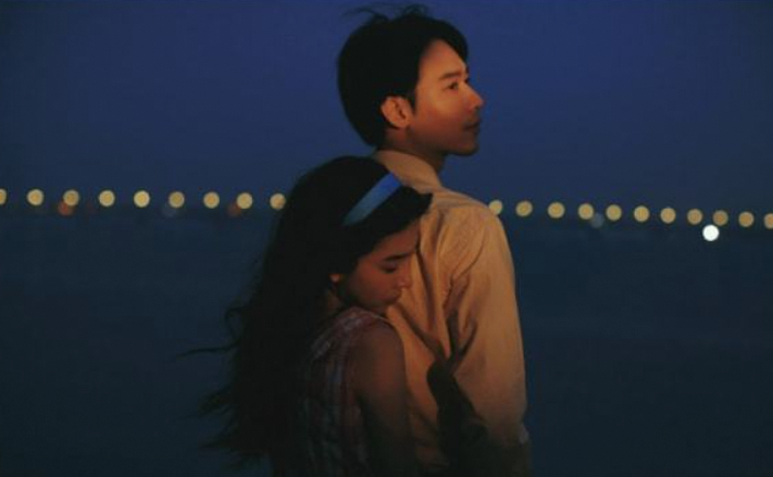 情侣们在烟火的绽放下热吻,众人举着手机记录着眼前美好的景象。