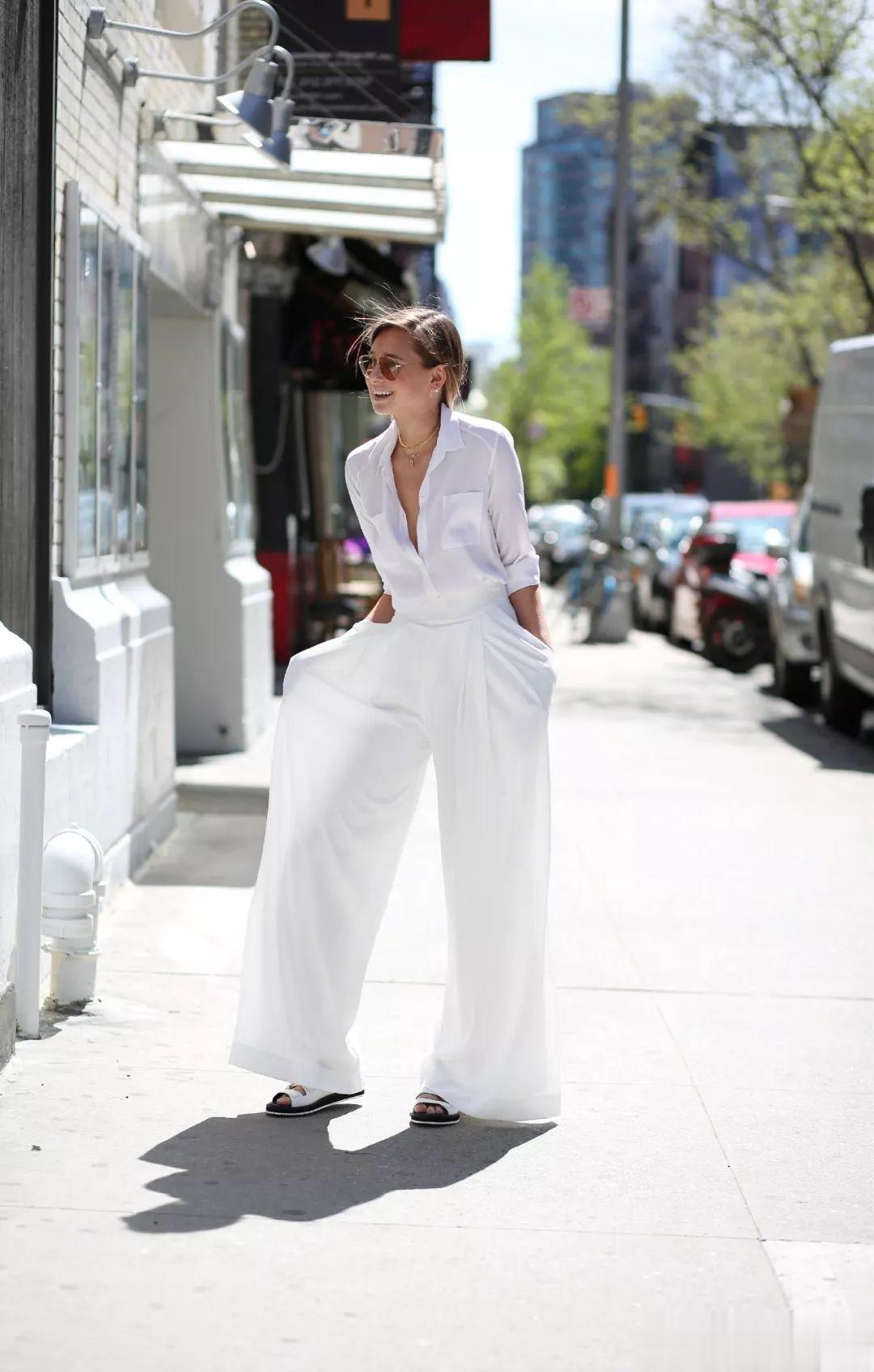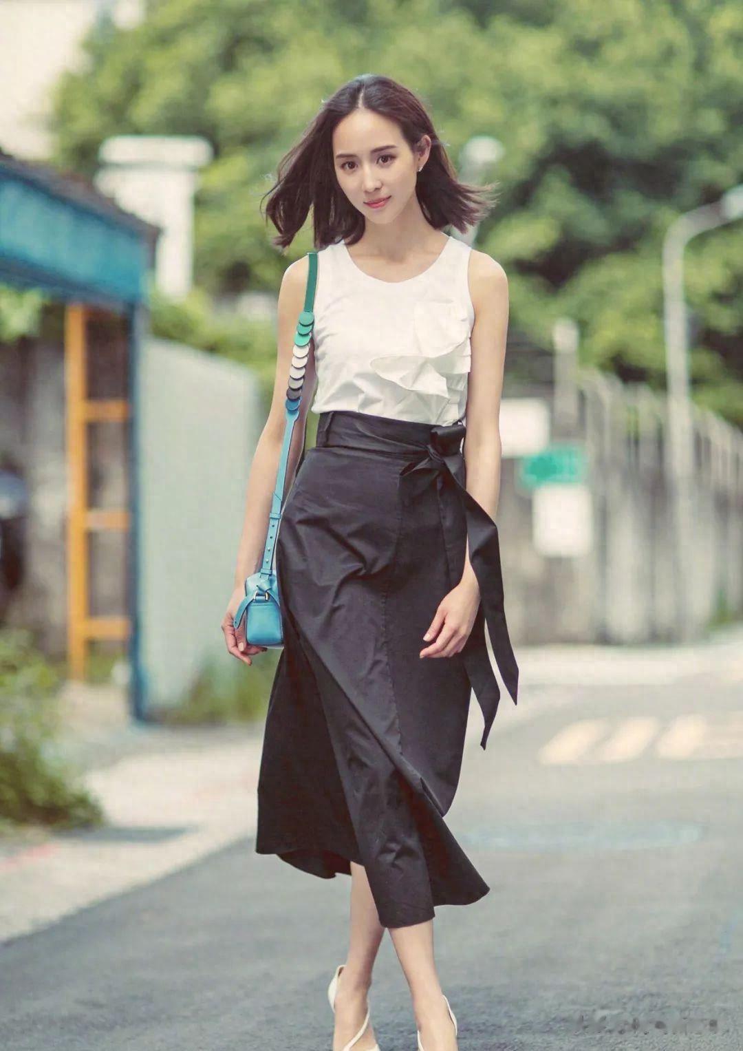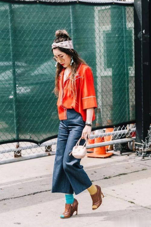 除了领口,露出纤细的脚踝也是显瘦的关键。下装选九分裤或中长裙,露出脚踝最纤细的部位,腿长立刻“延长5cm”。