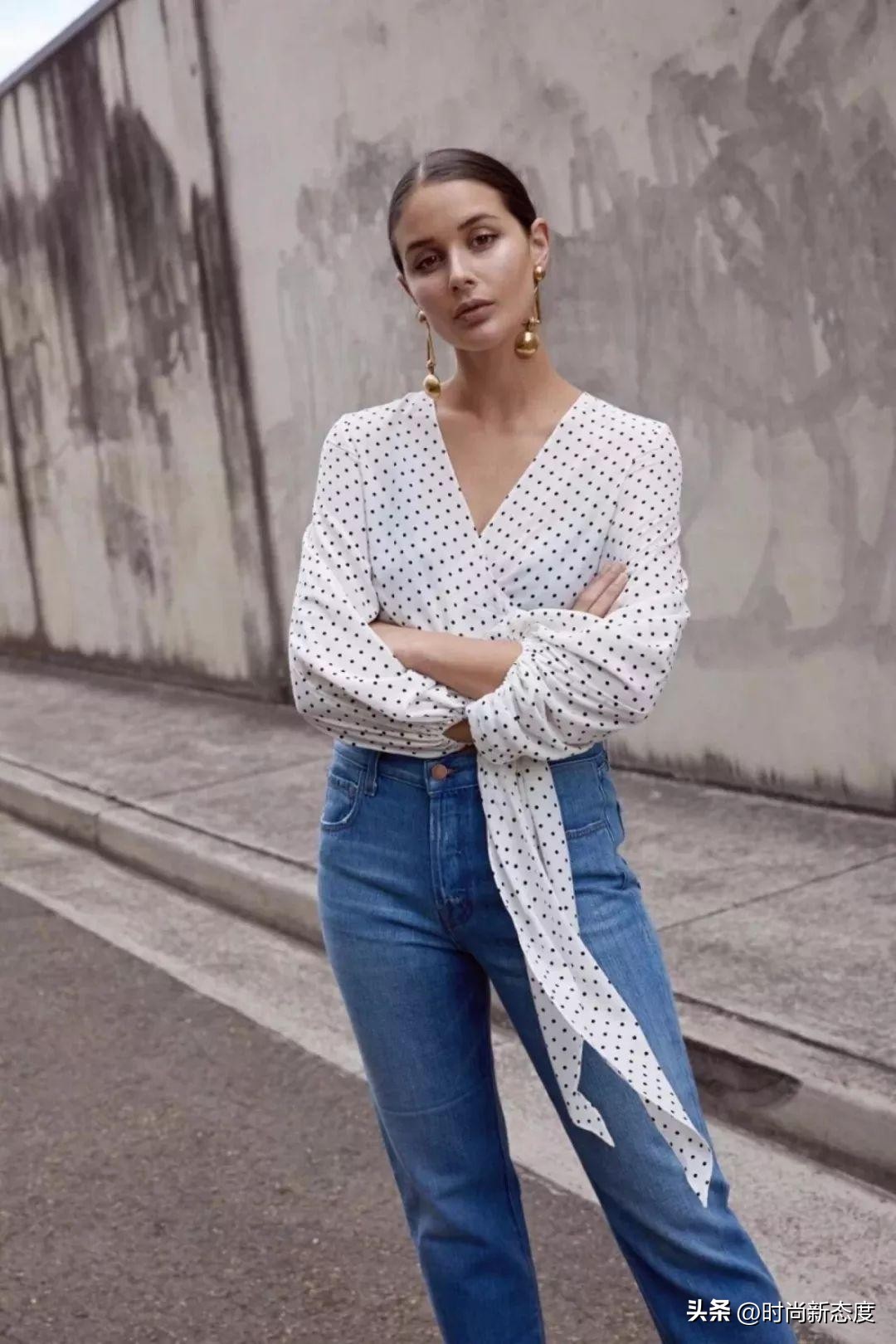 肩线清晰的女生可以试试一字肩上衣,怕暴露手臂的选斜肩设计,用线条分割视觉。