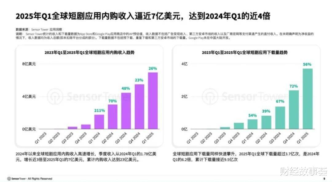 2025年第一季度,枫叶互动旗下的ReelShort和点众科技旗下的DramaBox内购收入分别增长31%和29%,达到1.3亿美元和1.2亿美元,包揽海外短剧应用收入榜和增长榜冠亚军。