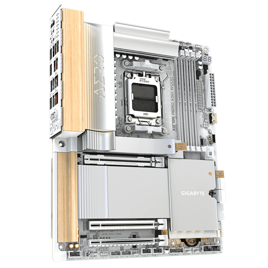 以X870E AERO X3D WOOD型号为例,该主板在确保完整性能输出的同时,创新性地融合了自然材质设计元素。其外部护甲与系统固件界面均采用木质纹理装饰,满足用户对硬件美学的个性化需求。在技术规格层面,主板采用16+2+2相电力供应架构,配合8层PCB板与双盎司铜层结构,显著提升信号传输品质。热能管理系统采用复合式散热模块覆盖关键供电区域,内部配置直接接触式导热管与高传导系数界面材料,辅以强化金属背板形成立体散热通道。主板提供的四个M.2存储扩展槽位,其中两个支持PCIe 5.0传输协议,为未来高速存储设备提供充足的升级空间。同时,前置USB Type-C接口具备65瓦电力输出能力,可满足各类外接设备的快速充电需求,大幅增强使用便利性。