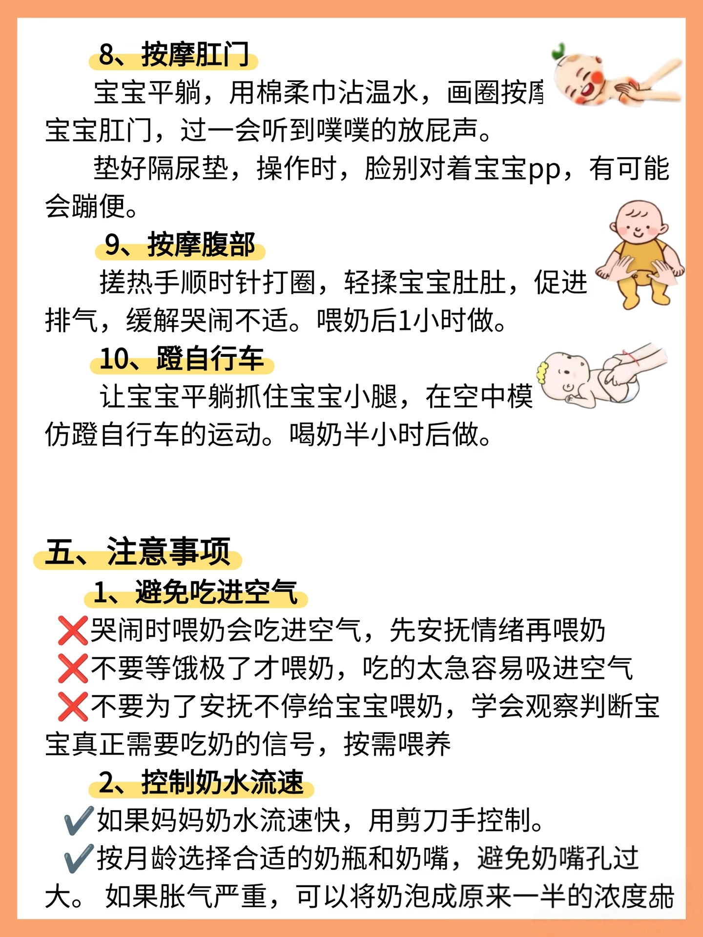 “蹬自行车”动作是最有效的排气操,让宝宝双腿轻柔交替屈伸,每天多做几组。飞机抱堪称“止哭神器”——让宝宝趴在你的小臂上,头枕在肘弯处,腹部有轻微压迫感,配合哼唱,往往一分钟就安静下来。