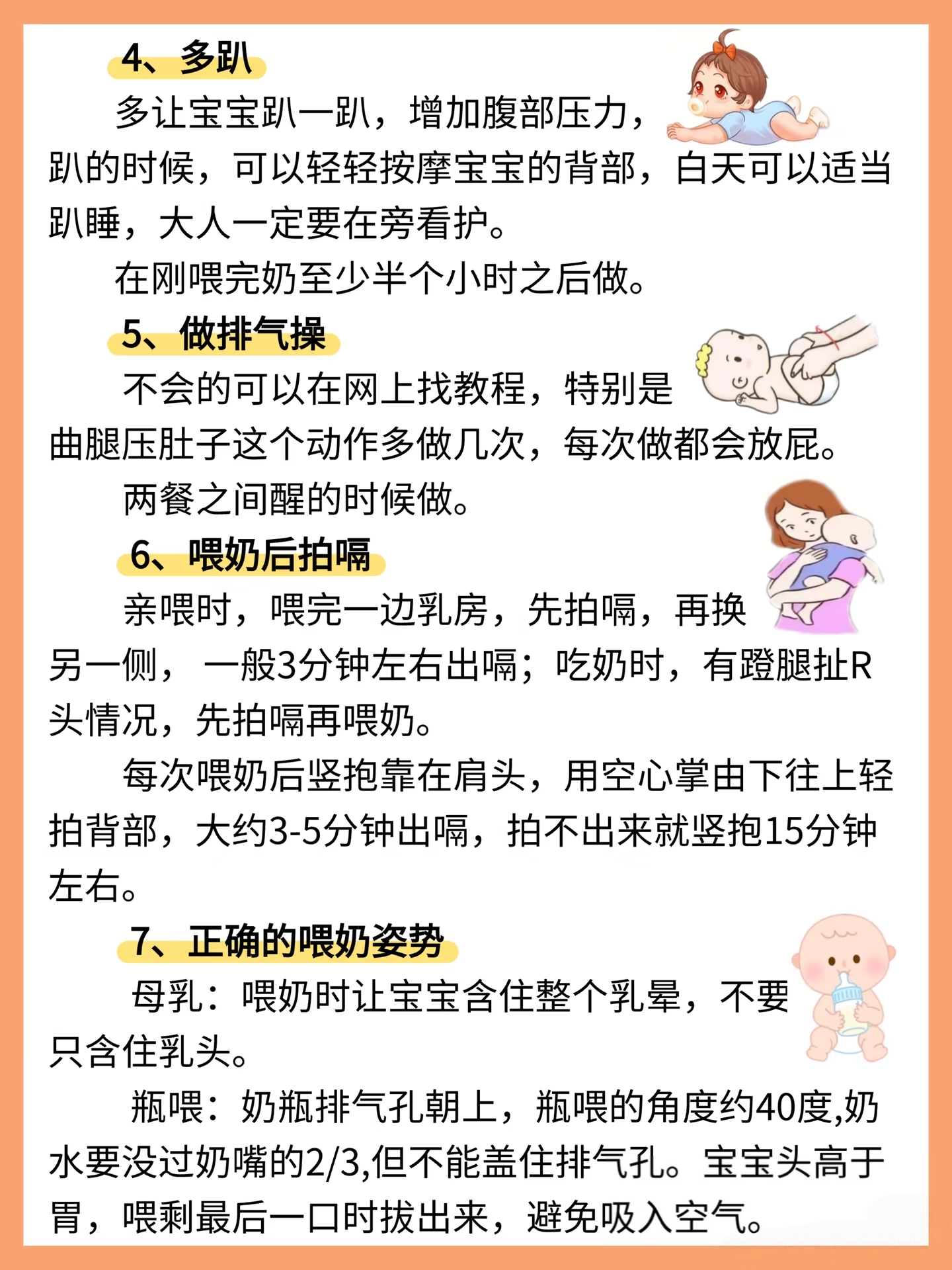 趴睡是宝宝的天然排气姿势,但必须符合严格条件:必须在白天、有大人全程看护的情况下进行,床面要硬,无杂物。夜间睡眠还是坚持仰卧,安全第一。