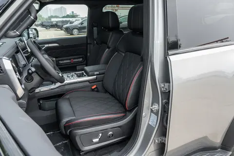 进入车内,这款车的内饰设计同样令人印象深刻。捷途旅行者C-DM 212km采用了百万级硬派内饰风格,配备64英寸全景大天窗,带来敞篷级别的开阔视野。座椅采用菱形格双排缝线工艺,结合麂皮材质,触感细腻且颇具品质感。硬派多功能方向盘和钻石纹理实体按键设计,兼顾了实用性与未来感,尤其是盲操时的便捷性得到了很好的体现。车内9处力量派软包覆拉手为乘客提供了更多支撑点,整体乘坐稳定性不错。此外,G318路线饰板氛围灯点亮了车内的越野灵魂,不同场景下的氛围营造颇为到位,内饰设计在硬朗与精致之间取得了较好的平衡。
