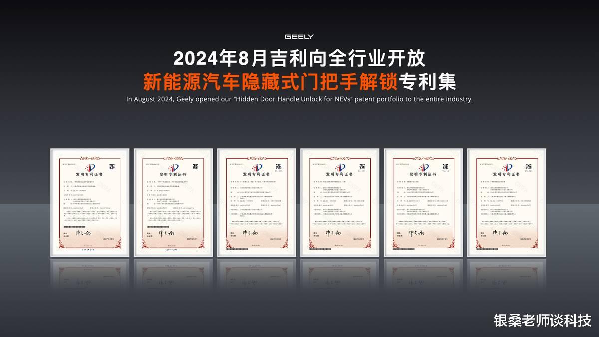 在新能源安全领域,吉利雷霆电驱、神盾金砖电池、车云一体AI BMS等技术均融合AI底层能力,神盾金砖电池更成功通过8针同刺、真弹贯穿、行业首个“整车+整包”带电六大串行试验等多项远超国标的“极限测试”,树立行业安全新标杆。公域安全方面,吉利已参与115项安全技术标准的制定,在全球范围内的权威安全评测中,已经获得超过70个最高安全评级,并向全行业开放共享电池底部安全、门把手安全等专利集及一键破窗技术,推动行业安全标准升级。此外,吉利在健康安全、防盗安全和数字安全等领域均储备数十种新技术。