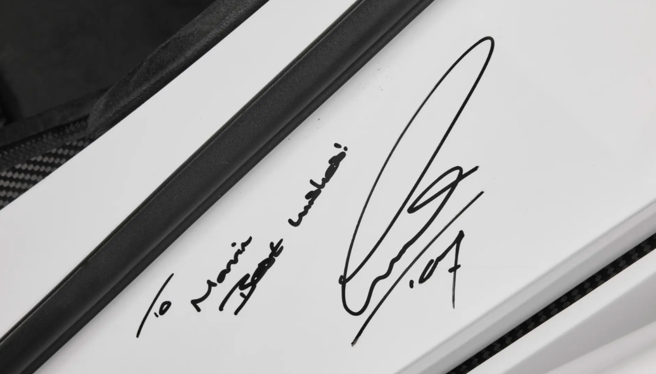 除了硬件升级,这台F1还藏有两大赛车传奇的签名彩蛋。早在文莱皇室拥有期间,它的侧门槛上就留下了迈克尔·舒马赫的签名,日期定格在1996年3月12日,恰逢舒马赫代表法拉利出战首场F1比赛的两天后,这一签名成为记录赛车史瞬间的珍贵印记。
