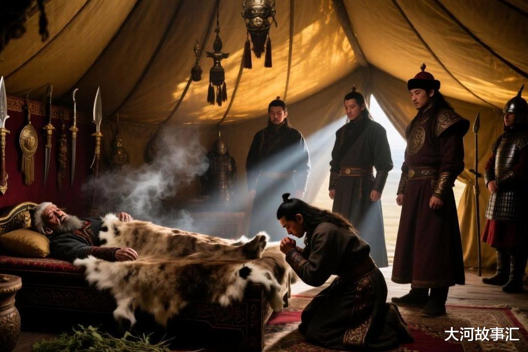 二十二岁的拖雷跪在父亲榻前,额头触地:“幼子守灶,守护祖业和父亲的营帐。”