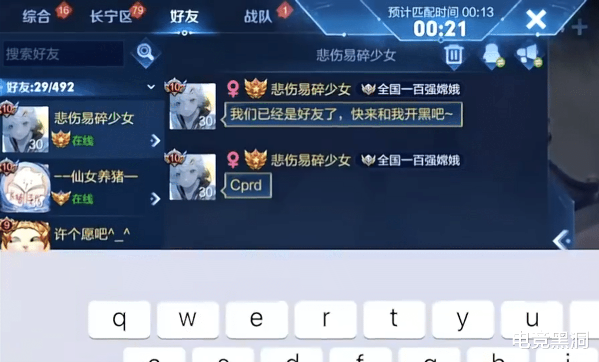 赛后可一看到,这位叫做悲伤易碎少女的玩家也是主动加上了青帝,毕竟两个人也是CPDD上了,青帝也是很认可这位女玩家的表现,而且从两个人的聊天上来看,青帝还是比较受认可,最终也是拿下了游戏的胜利,给许多玩家们树起了榜样。