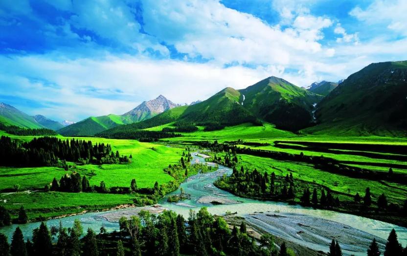 伊犁位于天山山脉西侧,三面环山,伊犁河在此冲积出一片肥沃的谷地,自然资源充沛。