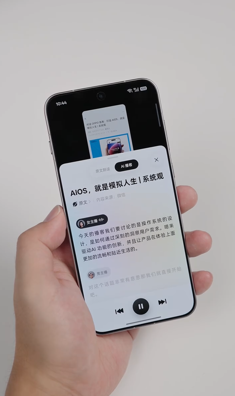 据 @ColorOS陈希 介绍,该功能可将文章一键转换为播客音频,用户可通过手机侧边栏入口,将文章直接转换为双人对话式播客,并自动添加背景音乐和开场音效,使听感更接近真人播客节目,“AI妙听”不同于简单朗读,AI会分析文章结构,提炼关键信息后重新组织语言,避免机械感。