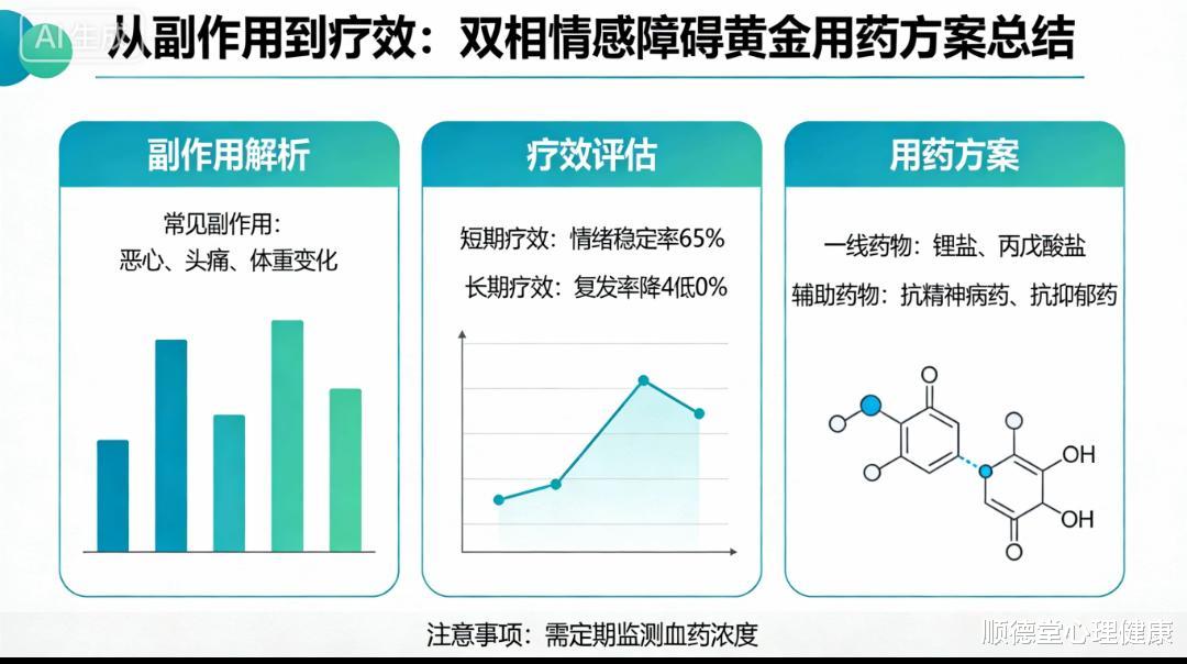 双相障碍的黄金用药方案因人而异,需要平衡疗效与安全性,并随病情调整。锂盐和喹硫平仍是重要选择,拉莫三嗪等新型药物提供了更多的可能性。未来的研究方向应聚焦于减少副作用及提高个体化治疗水平,使患者真正受益于科学管理的进步。