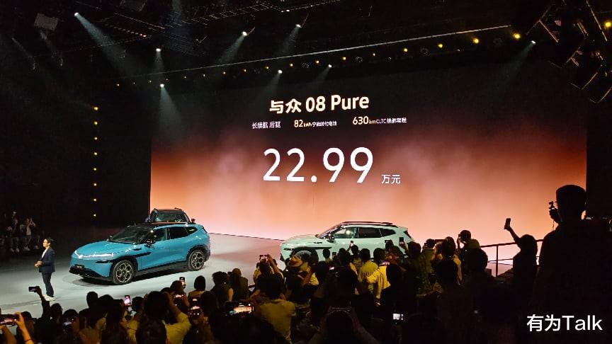 价格方面,与众08 Pure(长续航后驱):22.99万元;与众08 Ultra(长续航后驱):24.99万元;与众08 Max(长续航高性能四驱):28.99万元
