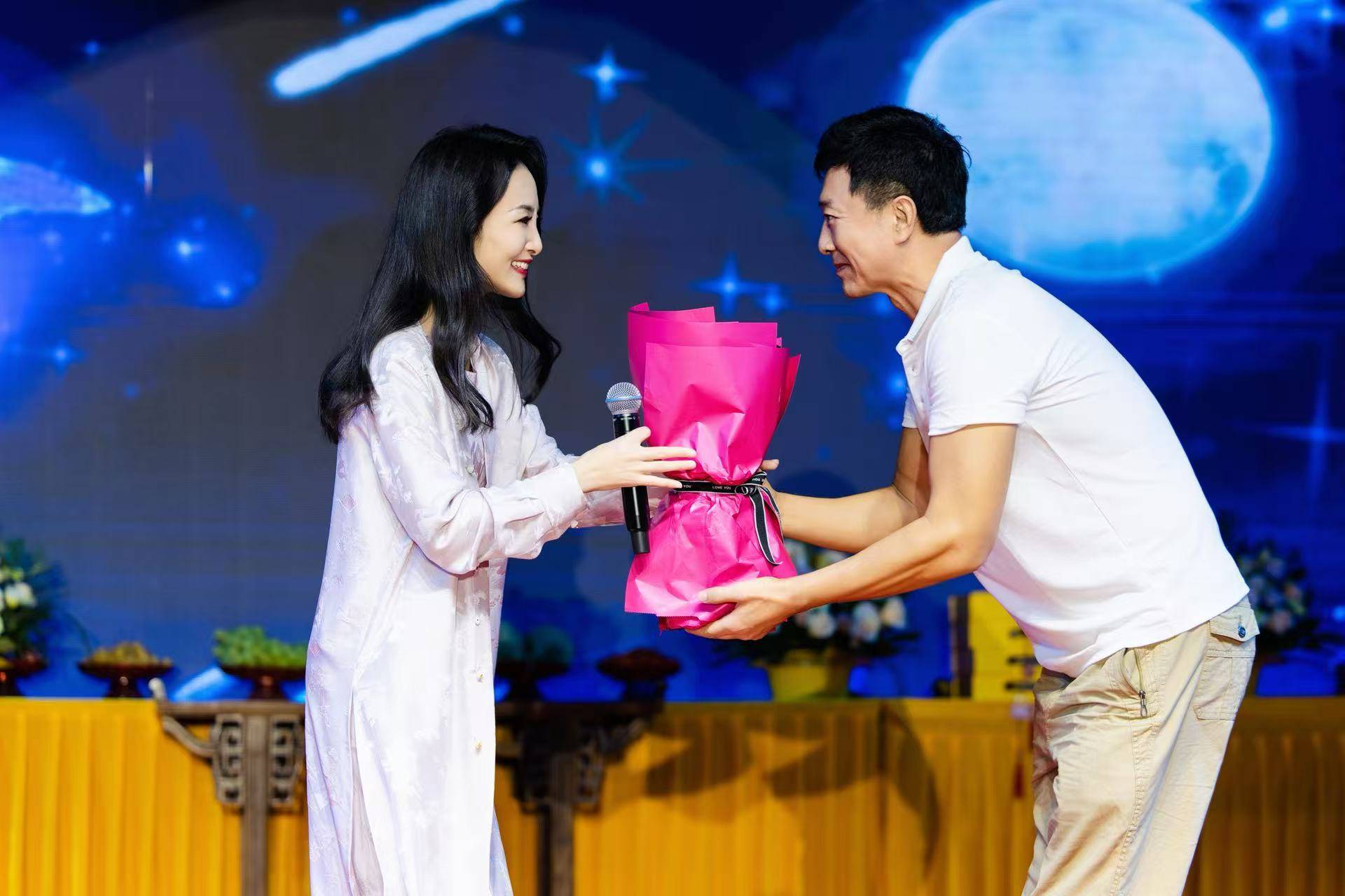 尤为令人感佩的是,这已是项亮月女士自与大智禅寺结缘以来,连续第四年在中秋佳节当天,推掉所有国内外活动邀约和个人事务以及对家人的陪伴,带领团队专程自费从北京赶往横店大智禅寺进行义务演出。