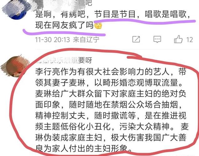 还有人说:李行亮赚的钱,就是进了麦琳口袋。以她那扭曲的三观,不能让她如愿,所以只能从抵制李行亮开始。
