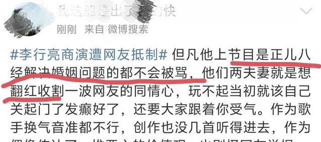 也有人表示:李行亮纵容妻子,公然损坏家庭妇女形象,制造舆论话题。达成个人黑红,从而使自身商业价值水涨船高,这种方式不可取,必须抵制。