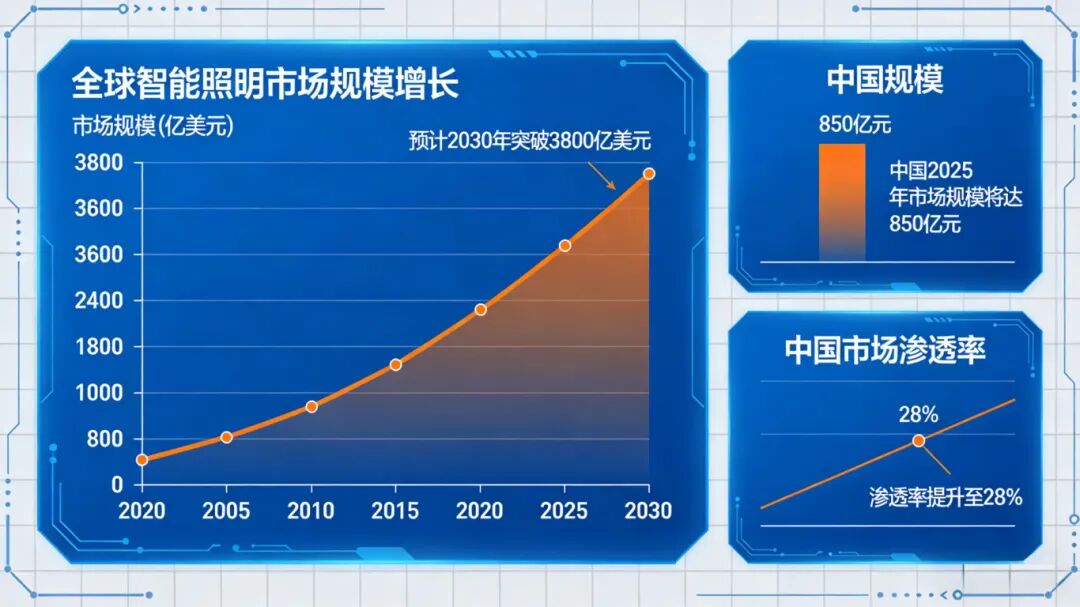 全球智能照明市场规模快速增长,预计2030年将突破3800亿美元,中国2025年市场规模将达850亿元,渗透率提升至28%。市场竞争已从价格战转向技术与生态竞争:一方面,专利布局白热化,2024年全球智能照明专利申请量达4.2万件,中国占比42%,核心集中在智能控制算法、光学设计等领域;另一方面,头部企业加速生态化布局,通过开放协议实现跨品牌互联互通,目前跨品牌设备互联互通协议覆盖率已达75%。