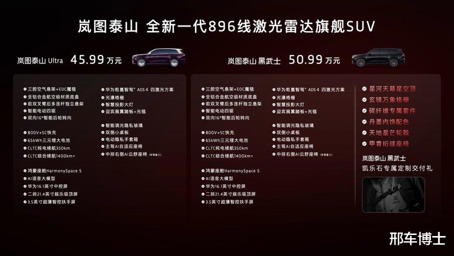 【2026年3月17日】岚图汽车召开以“远见”泰山技术焕新发布会。岚图联合央视新闻,交出了一份极具分量的时代答卷,全新一代896线激光雷达旗舰SUV岚图泰山Ultra版正式启动量产交付,新车售价45.99万元。同时,岚图泰山黑武士版开启大定,新车售价50.99万元。岚图以惊人的速度,率先将顶尖的896线激光雷达量产装车。目前,全国展车及试驾车已全面到店。这不仅体现了岚图强大的体系力,也标志着岚图泰山Ultra及黑武士凭借“硬核机械+顶尖智驾”的双重护城河,重新标定了9系旗舰SUV的价值新高度,让世界看到,智慧出行的未来将由中国来定义。