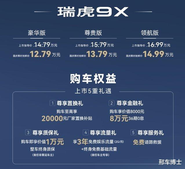 如今,奇瑞汽车一言”9“鼎,瑞虎9再出新品,推出瑞虎 9/9X,为燃油车市场注入新活力。