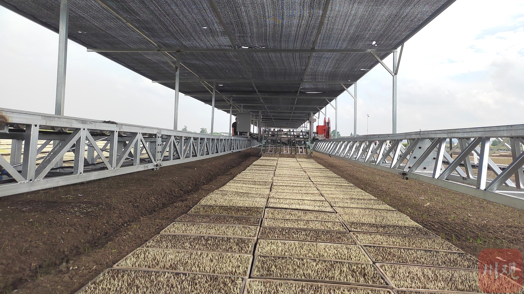 据省农业农村厅农业机械化处处长周杉介绍,冷辑龙这台设备是四川首台投用的大田自动化摆秧起秧设备。