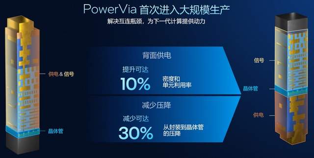 在传统半导体设计体系中,电源(VDD/GND)与信号互连的布线均集中于硅晶圆顶部的多层结构,这种 “正面集成” 的模式在技术迭代初期曾发挥稳定作用,但随着晶体管尺寸持续微缩、布线密度呈的逐渐增长,其固有的缺陷逐渐暴露,已然成为制约性能提升的 “瓶颈所在”。具体而言,传统正面布线方案会引发三大核心问题:其一,路由拥堵现象愈发严重,有限的顶部布线空间难以承载海量信号与电源线路,导致线路规划 “捉襟见肘”;其二,电压降与IR降问题凸显,复杂的布线交织增加了电流传输损耗,影响芯片供电稳定性;其三,电源效率大幅降低,能量在传输过程中损耗加剧,难以满足高性能芯片对能效与信号完整性的严苛要求,最终导致芯片性能难以突破既定目标。面对这一行业共性难题,半导体领域纷纷探索技术革新路径,背面供电方案应运而生,成为破解困局的“关键之举”。而PowerVia技术,正是英特尔专为Intel 18A工艺研发的专有背面供电网络(BSPDN)技术,它通过将电源布线转移至晶圆背面,彻底重构了布线体系,为解决传统方案的痛点提供了 “釜底抽薪” 的创新思路。