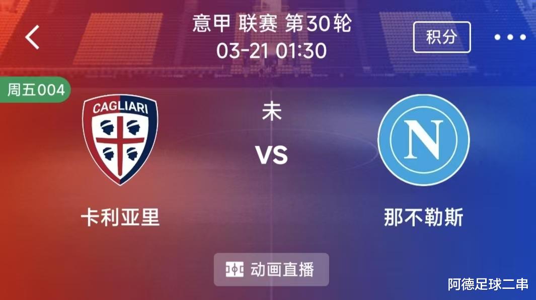 004意甲:卡利亚里VS那不勒斯 时间:2026-03-21 1:30 场地:撒丁岛竞技场