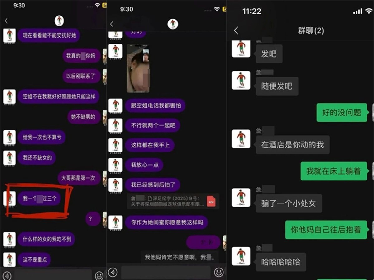 一位自称是球员詹某某女友的网友,爆出了一连串猛料:指控詹某某聚众淫乱、欺骗感情,甚至还与一名32岁空姐有不正当关系。