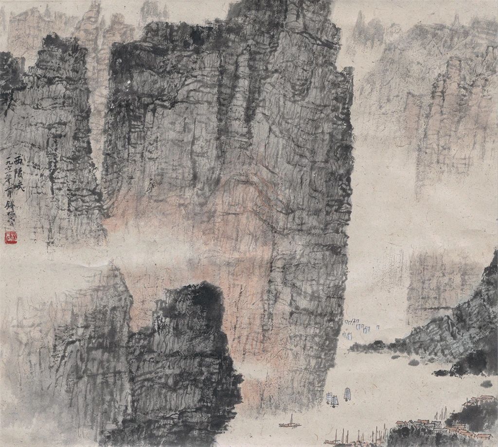 钱松喦先生在现代中国画坛上以山水画闻名遐迩,作为“新金陵画派”的杰出代表,他的画作以其稳健、凝重、沉着与浑厚的独特风格著称,传递出深邃的内涵和丰沛的情感。他的艺术成就不仅继承了中国传统文化的精髓,更赋予了作品鲜明的时代气息和新的生命力。钱松喦先生是近现代艺术界“以书入画”理念的卓越践行者,其作品中流露出篆隶与魏碑书法的深刻影响。