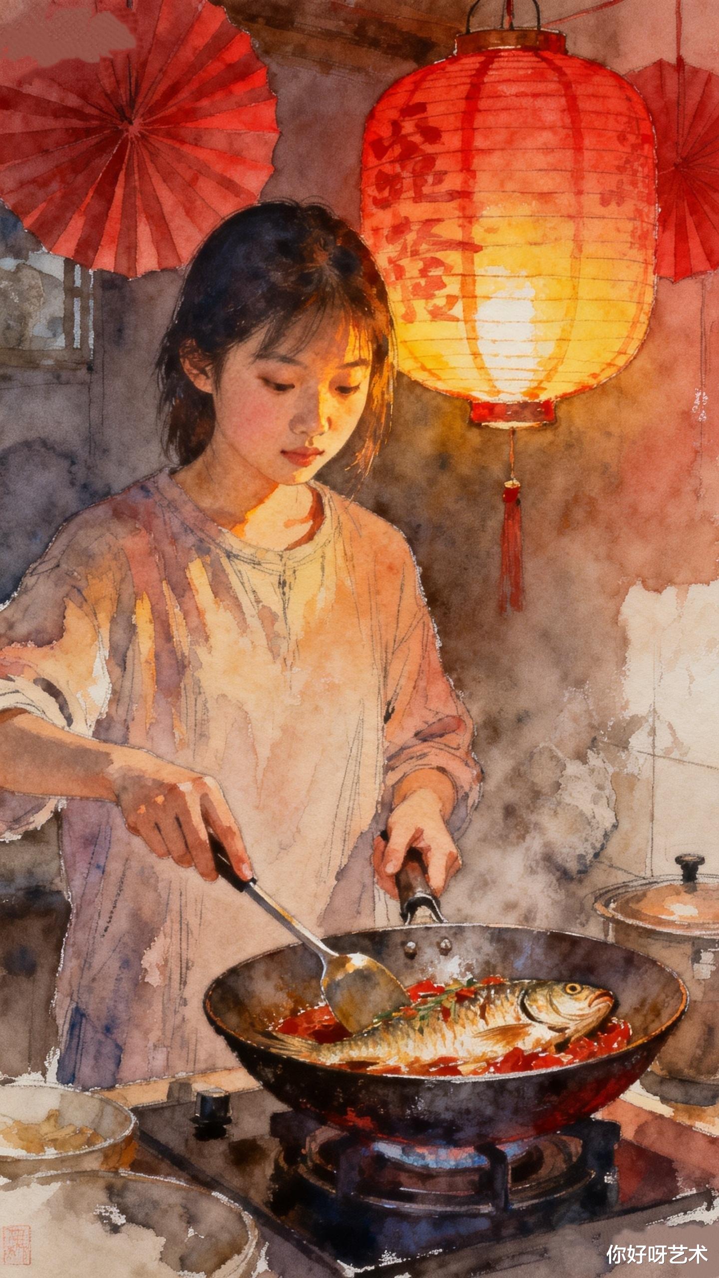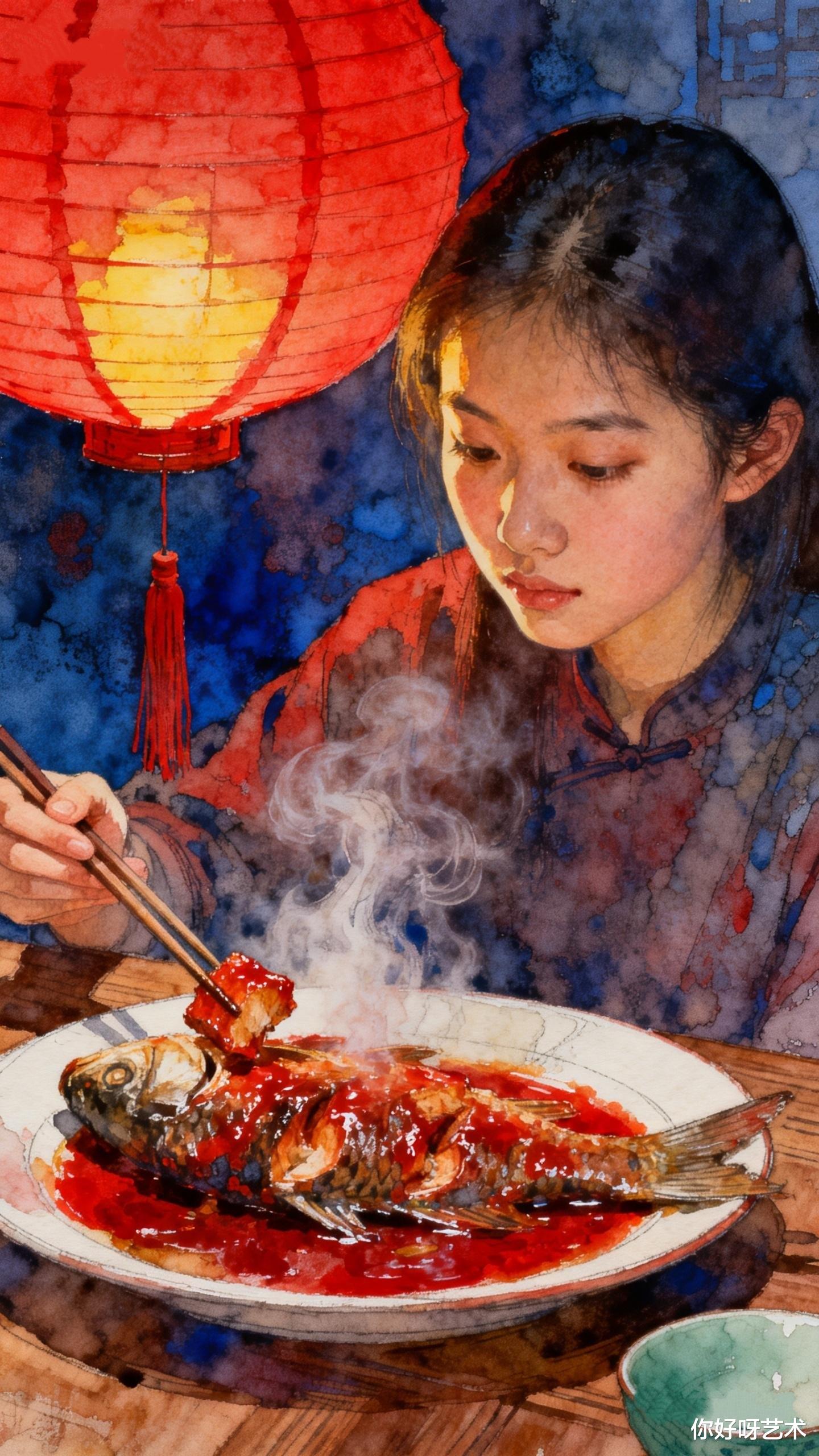 腊月初七的夜晚,水彩与红烧鱼完成了奇妙的对话。少女知道,明天太阳升起时,颜料会干涸,鱼肉会吃完,但那些被艺术点亮的瞬间,会像鱼骨里的钙质,悄悄沉积成生命的年轮。在这个被手机屏幕切割的时代,她固执地相信:有些美好,必须用最原始的方式——画笔、灶火、还有一颗愿意慢下来的心——才能完整地捕获。