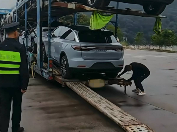 而面对违法轿运车这一“顽疾”,交警更是采取零容忍的态度,当场下达卸载整改指令。在执法现场,一辆辆违规装载的轿运车在交警的监督下,将超载部分卸载,直至符合规定标准。这一果断有力的举措,犹如一记重拳,直击超载超限的痛点,让违规者付出实实在在的代价。