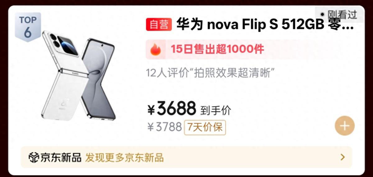 每当谈到折叠屏手机,许多年轻人印象中可能都会涌现“高预算”、“高净值”、“商务专属”等标签,然而近年来,随着新品不断涌现,折叠屏手机也在向大众化和年轻人群靠拢,以近期上市的nova Flip S为例,它就以时尚便携的小折叠形态和3K元档位的亲民定价,成功打破折叠屏“高不可攀”的刻板印象,成为今年双十一期间年轻人换机尝鲜的热门选择,并轻松跻身京东折叠屏热销榜单TOP6。