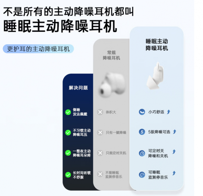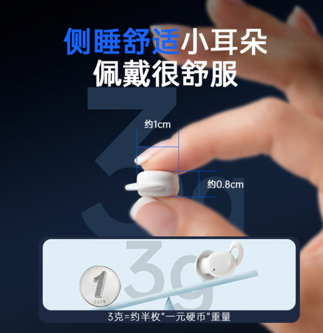 声阔a30是针对睡眠场景来做的一款睡眠耳机,单耳约3g,带主动降噪