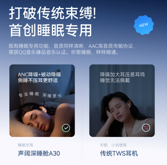 声阔a30获得了qq音乐认证,听歌睡眠是不错的选择
