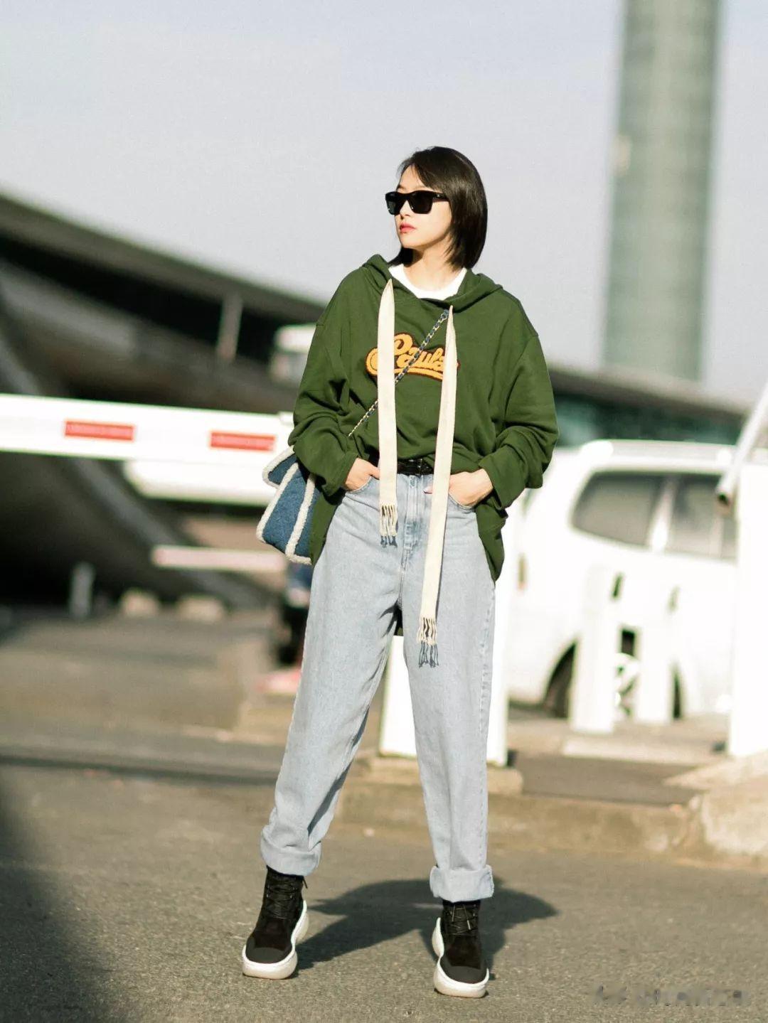 二、搭配利落硬挺的下装,避免拖沓感卫衣本身属于休闲单品,如果搭配同样休闲的下装(如运动裤、阔腿裤),很容易显得拖沓臃肿。但上海女生们却懂得用利落硬挺的下装来平衡卫衣的休闲感,让整体造型既时尚又显瘦。