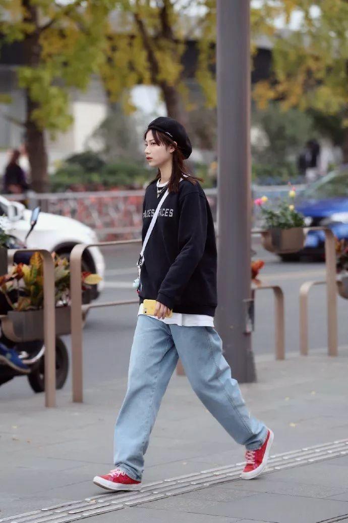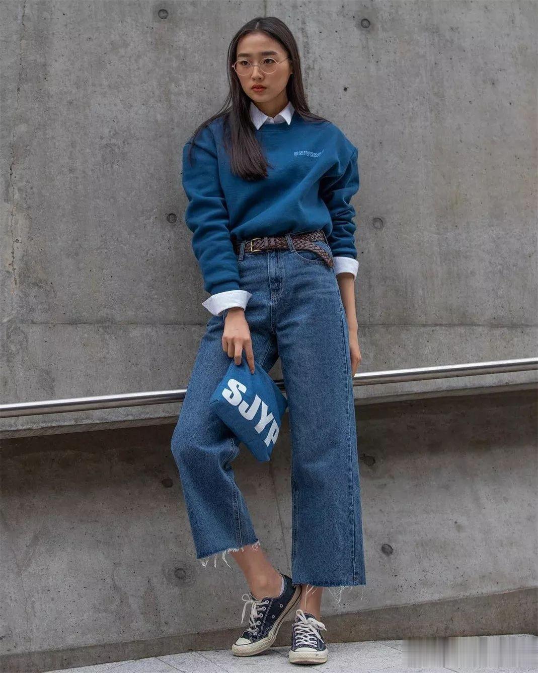 比如卫衣+牛仔裤的组合,上海女生们通常会选择高腰直筒牛仔裤或微喇牛仔裤。这种裤型既能修饰腿型,又能通过硬挺的面料提升整体造型的利落感。比如浅灰色卫衣叠穿白色T恤,搭配高腰直筒牛仔裤和短靴,这种“上松下紧”的搭配方式既显腿长又显瘦,特别适合小个子女生。
