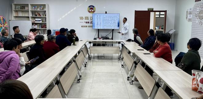 讲座现场,中医药科主治医师以“秋季养生的中医智慧”为主题,结合《黄帝内经》理论,深入浅出地讲解秋季气候特点对人体健康的影响。医师指出,秋季养生需注重“润燥、养肺、收敛”,并针对老年人常见的呼吸道疾病、脾胃虚弱等问题,现场传授药膳食疗方、穴位按摩技巧及艾灸养生法。居民纷纷拿出手机记录养生要点,更有长者现场体验穴位按摩,直呼“实用又方便”。