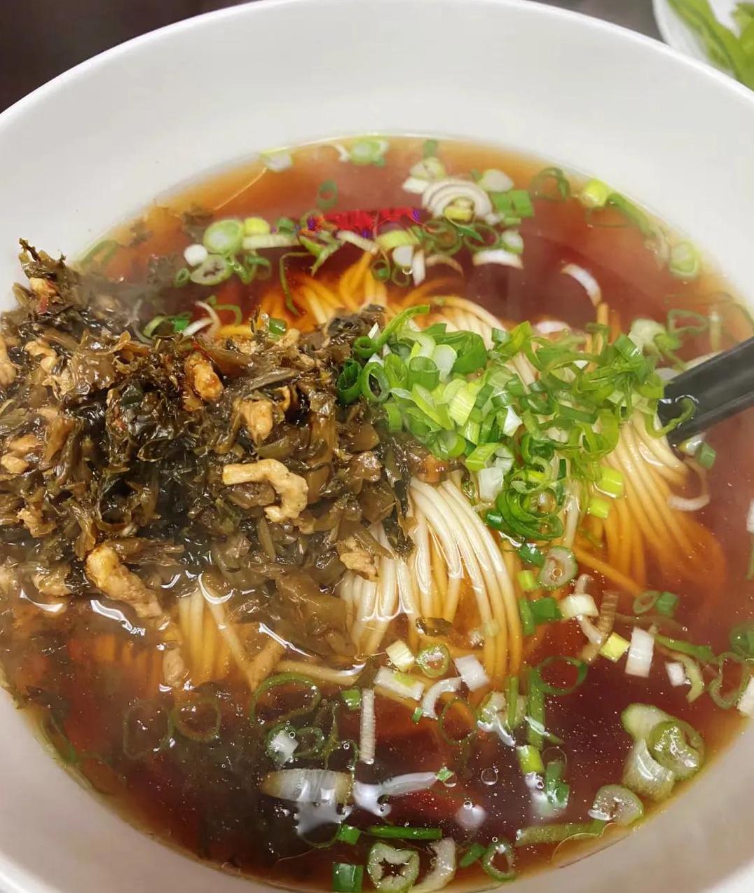 还有人喜欢雪菜肉丝面,觉得雪菜的脆爽搭配肉丝和面条,非常清爽,适合夏天吃。